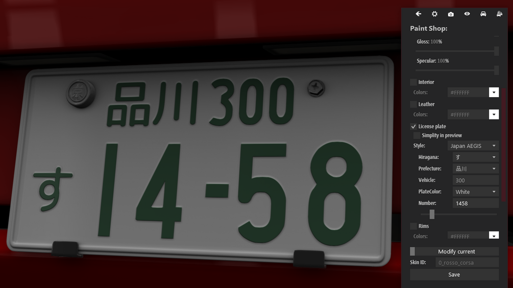 Finally we can provide the community with the first ever accurate Japanese car licence plate model and with full CM Showroom Paint Shop integration!